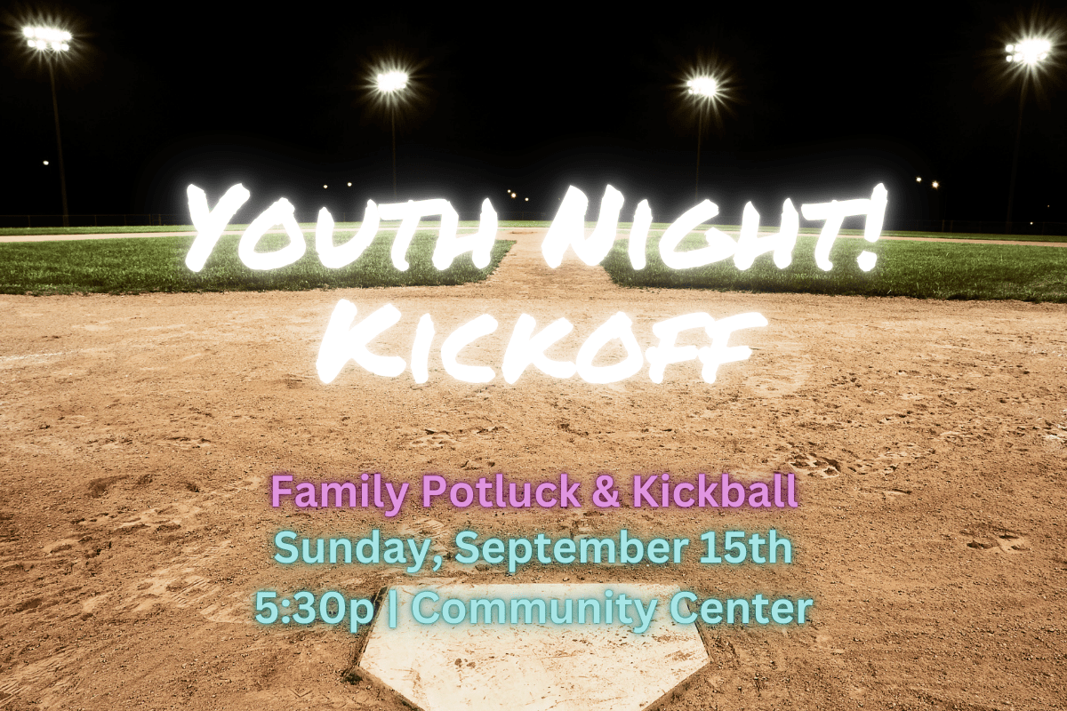 September 15th starting at 5:30pm. Family potluck followed by some kickball!