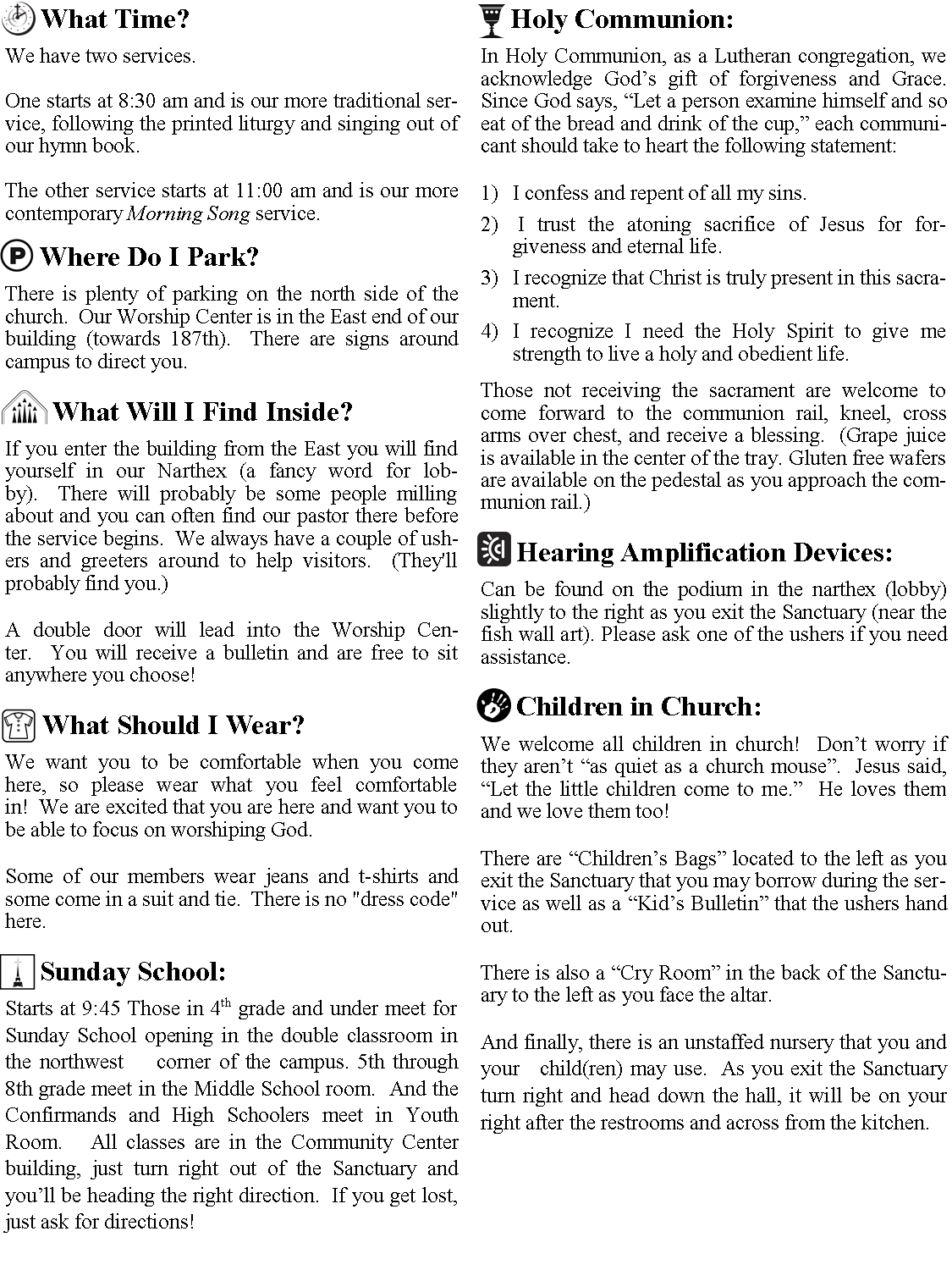 We believe that being together in fellowship and worship is an important part of a Christian’s life. We come here to experience love, forgiveness, friendship, and encouragement from our Savior, Jesus Christ, and each other. Join our family!